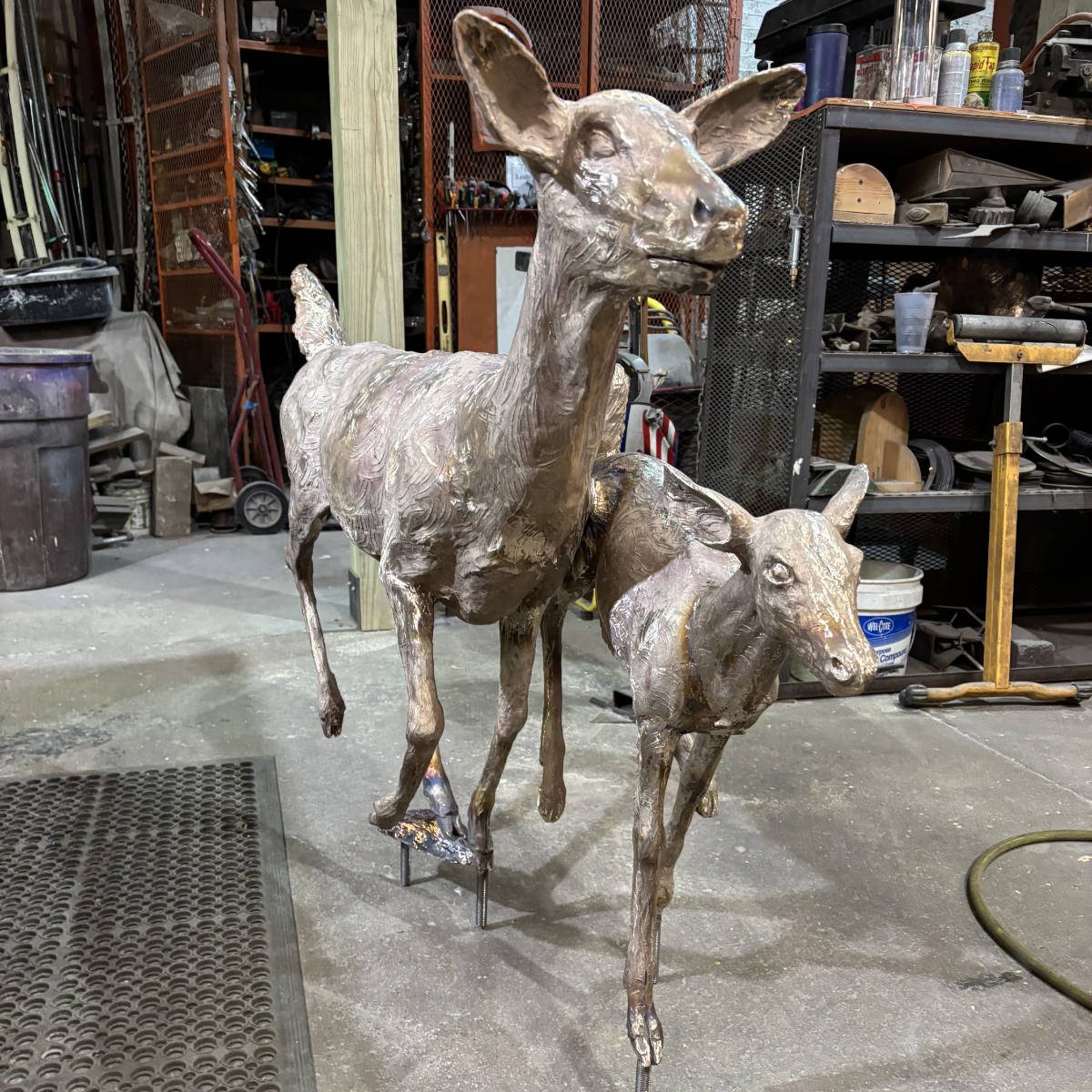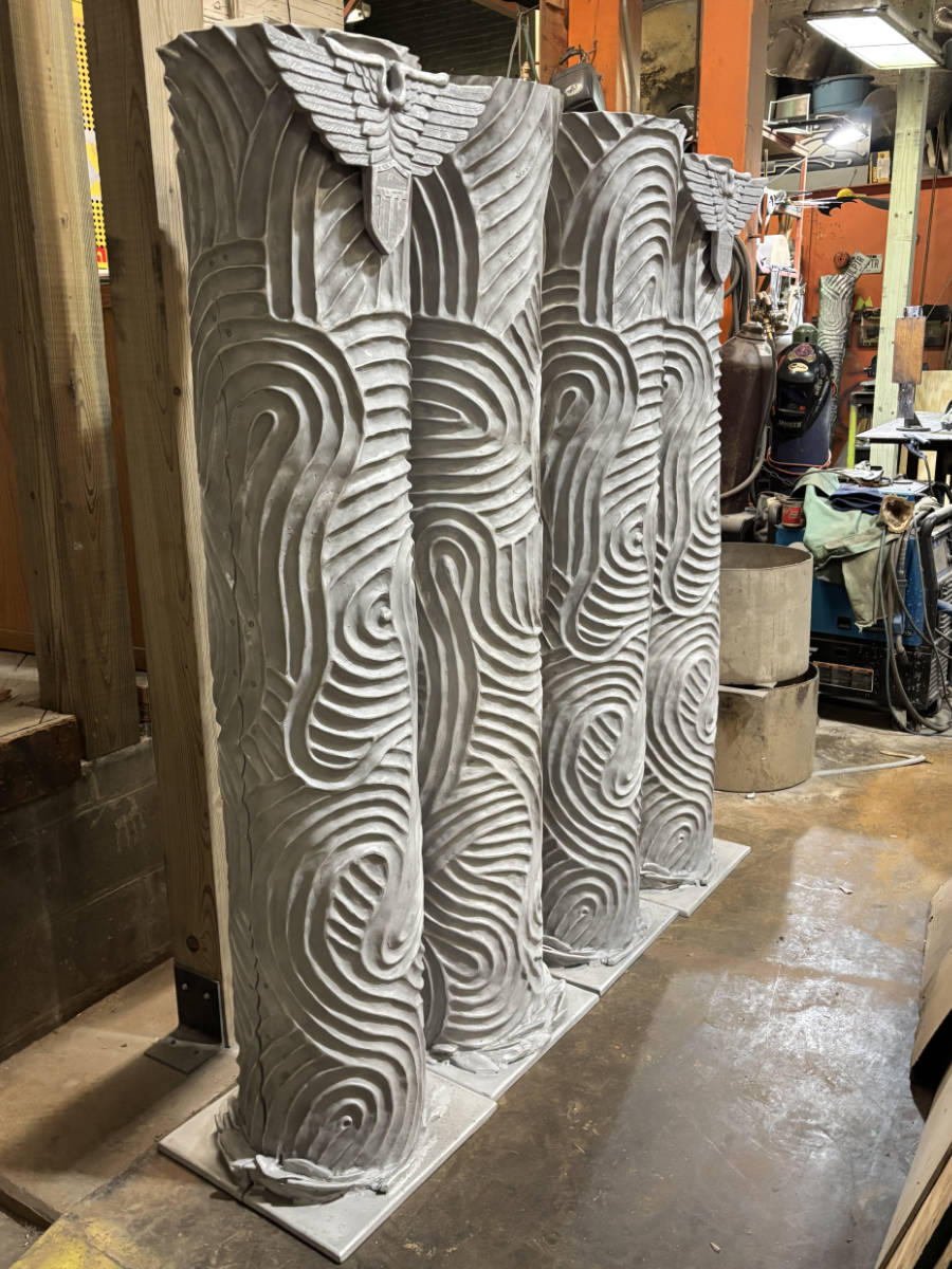Bruning Sculpture’s foundry can provide casting and fabrication services for artists. We use the shell cure perdue (lost wax) method to insure detailed surfaces. We also use resin bonded sand for larger castings. We provide chasing and patination in numerous color variations. We pour both silicon bronze (a copper alloy) and aluminium.